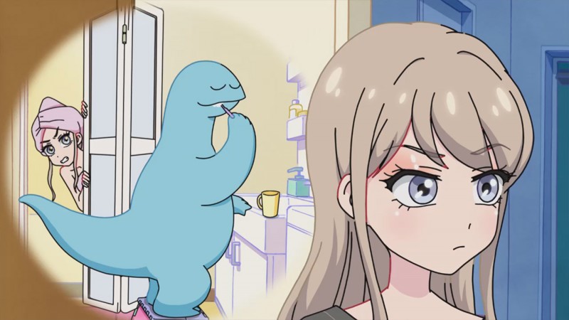 Она начинает заботиться о новом "сожителе", кормит его и убирает за ним. Скоро Каэдэ замечает, что за динозавром легко ухаживать, ведь у них много общего. Оба любят смотреть телешоу и следить за модными тенденциями. Динозавр даже может выбирать одежду и любит, когда Каэдэ помогает ему создавать образы.