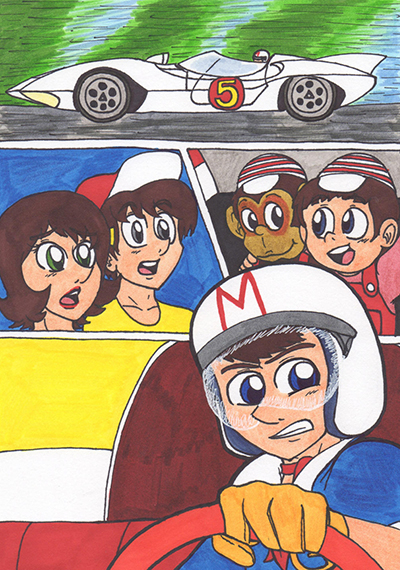 Спиди собрал команду единомышленников. Его лучший друг и механик Спарки всегда готов поддержать. Младший брат Спрайтл проявил себя как надежный напарник, несмотря на юный возраст. Его умная ручная обезьянка Чим-Чим стала талисманом для всей команды, а девушка Спиди Трикси верила в него и была готова поддержать.