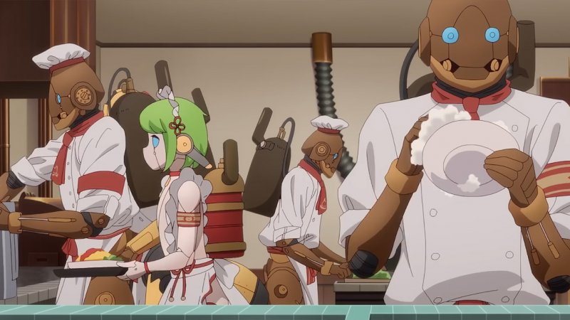 Пятеро роботов-девушек начали адаптироваться к мирной жизни. Они никогда прежде не сталкивались с такой обстановкой, и им предстояло научиться жить в новом мире. Их создатели установили в кафе специальное оборудование, помогающее роботам понимать эмоции людей и реагировать на них.